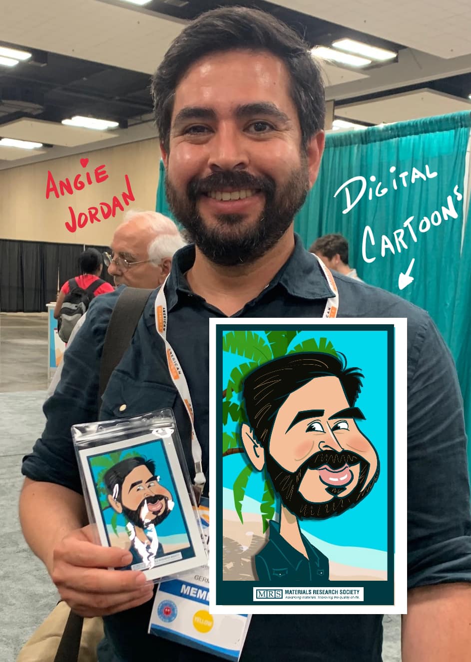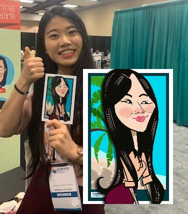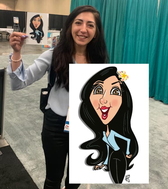 My client from MRS decided to bring my talent to entertain many of the attendees and Boy! Was I busy! The lines grew long everyday and I was drawing nonstop! Take a look at many of the FUN digital cartoon selfies!