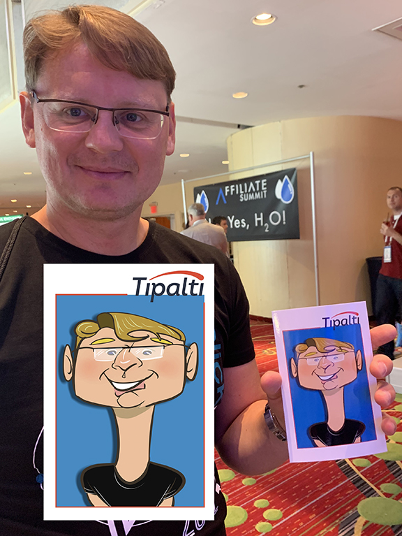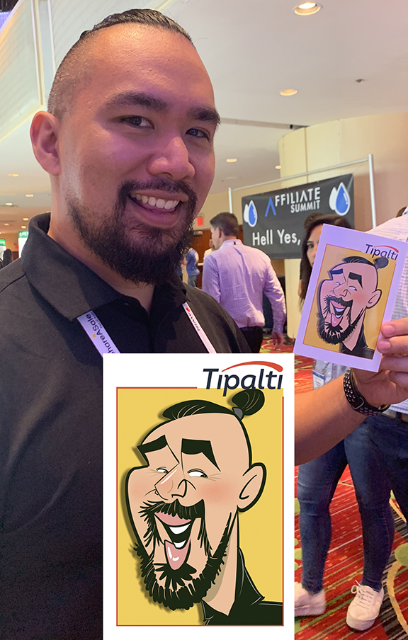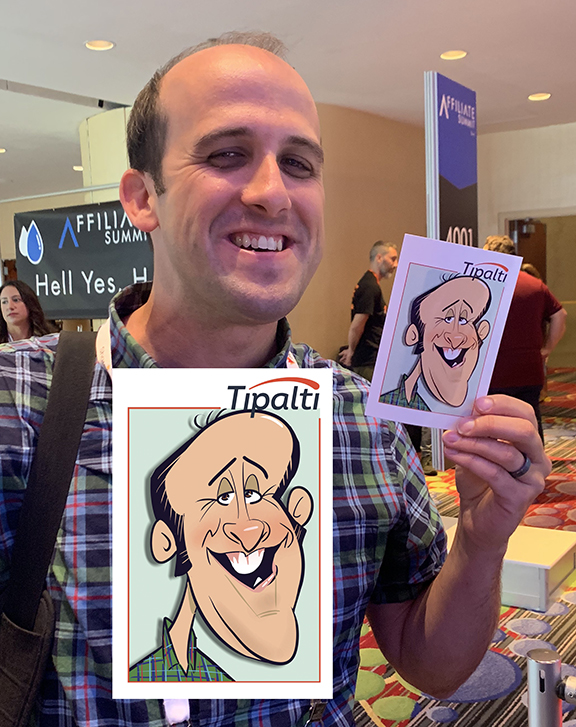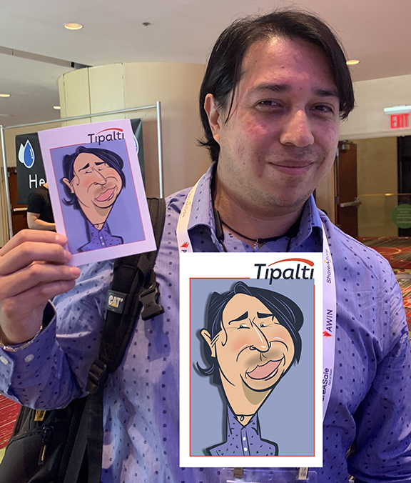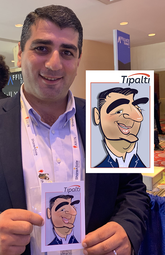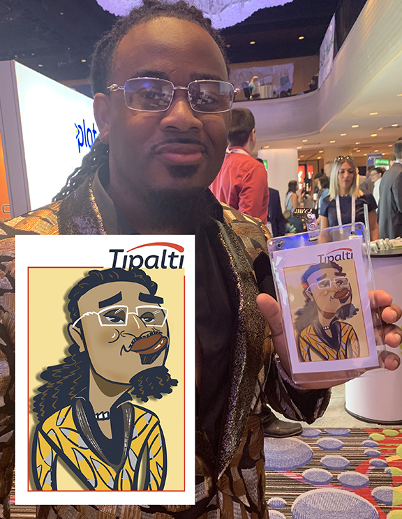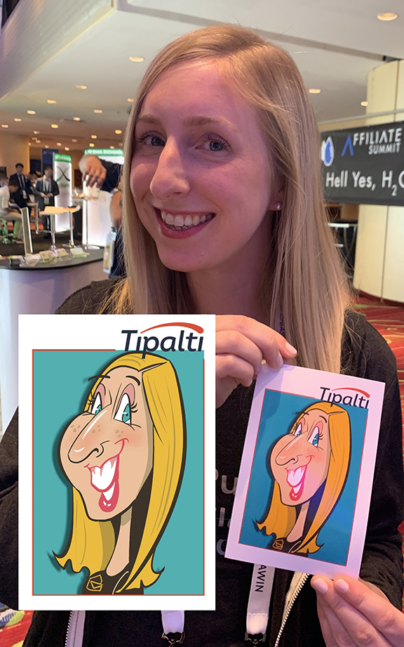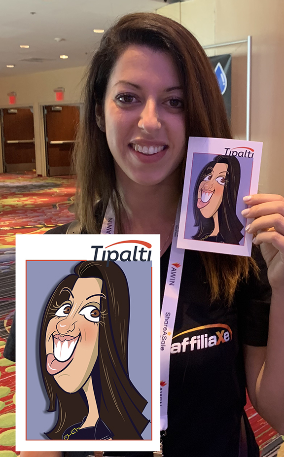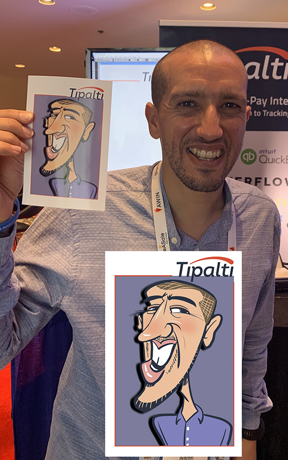 I believe this may be my 3rd year working with my clients and bringing their expo booth much traffic. My cartoon style is a show within itself and the more I create each individual into my detailed “retro style,” the more I build a crowd around me to watch and to be able to receive their own “selfie” digital cartoon. Take a look at my creativity! It is award winning!
