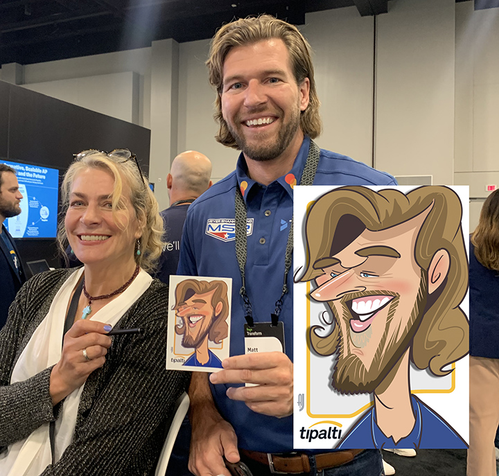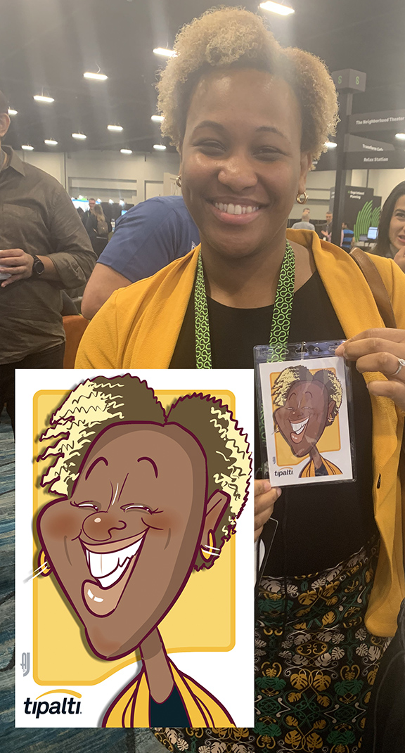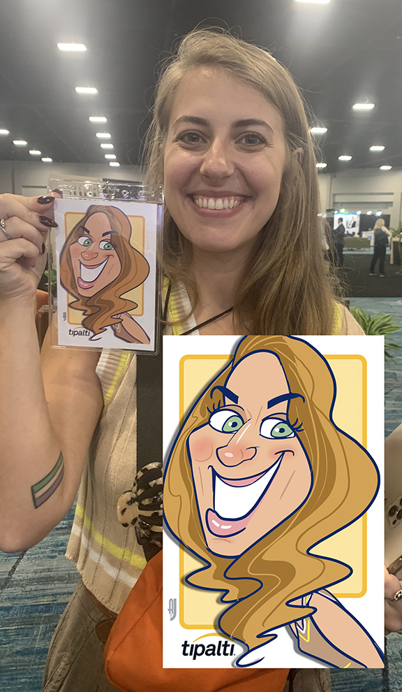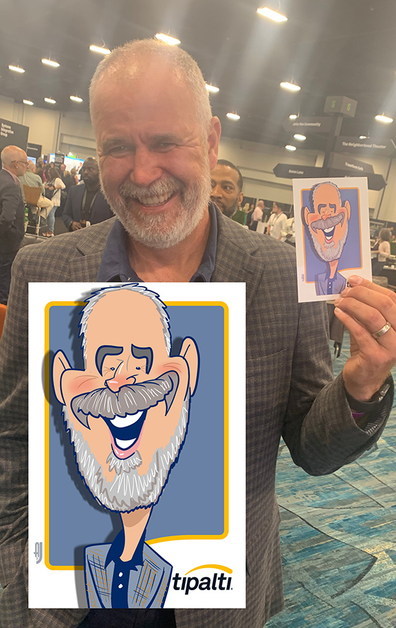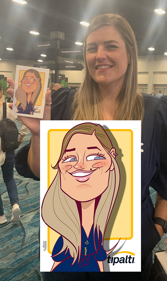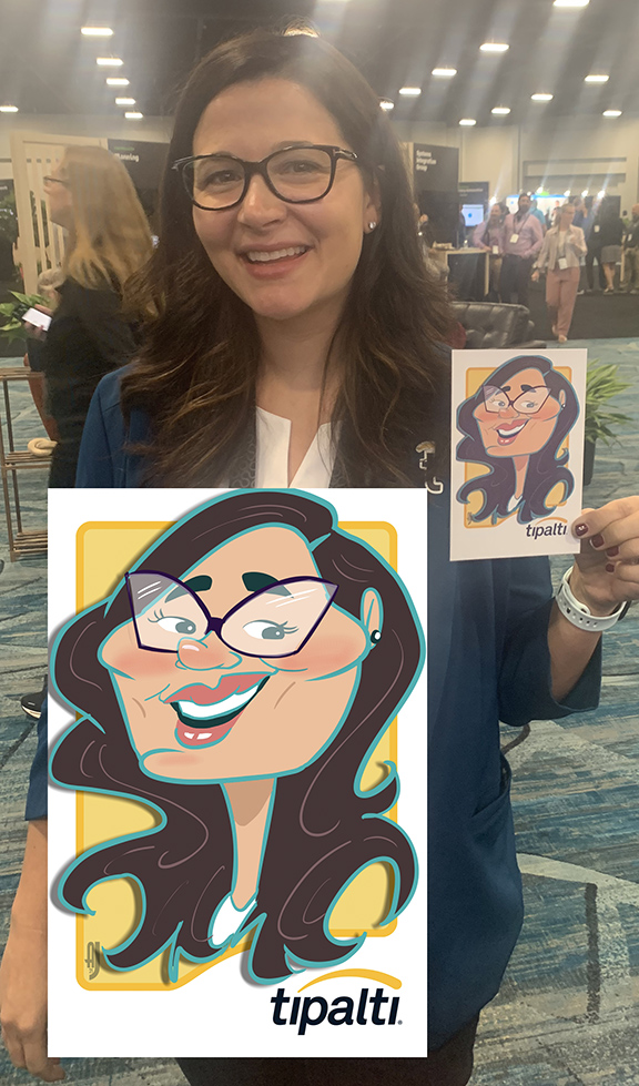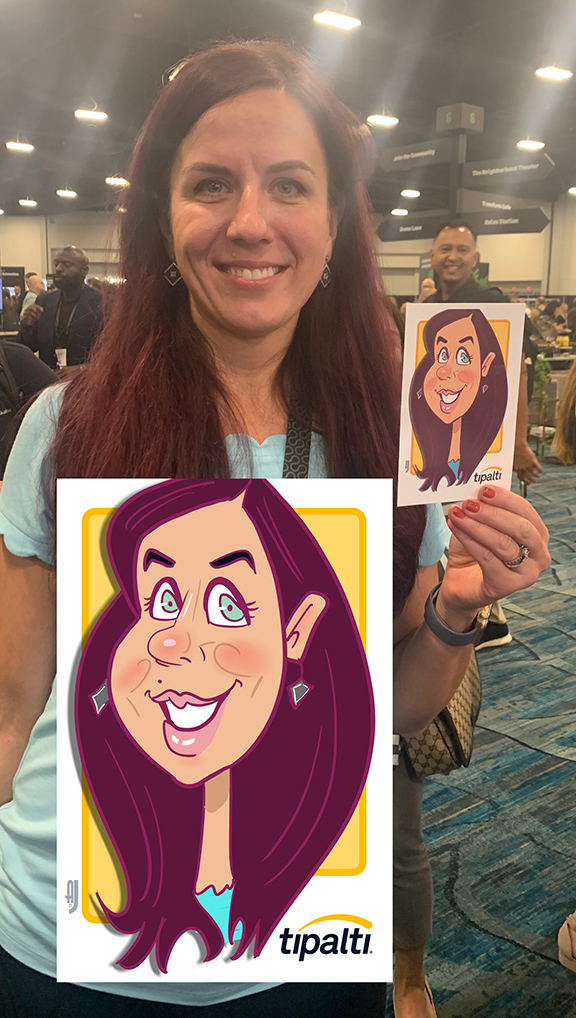 This conference brought so many attendees to wait in line for this every own fun Digital Cartoon Selfie. Also, many enjoy watching me draw on the monitor, step by step, with each line, creating each into my fun and award winning cartoon style. Enjoy the fun cartoon faces I created in the photos below! Thank you Tipalti and I will see you in Vegas next!